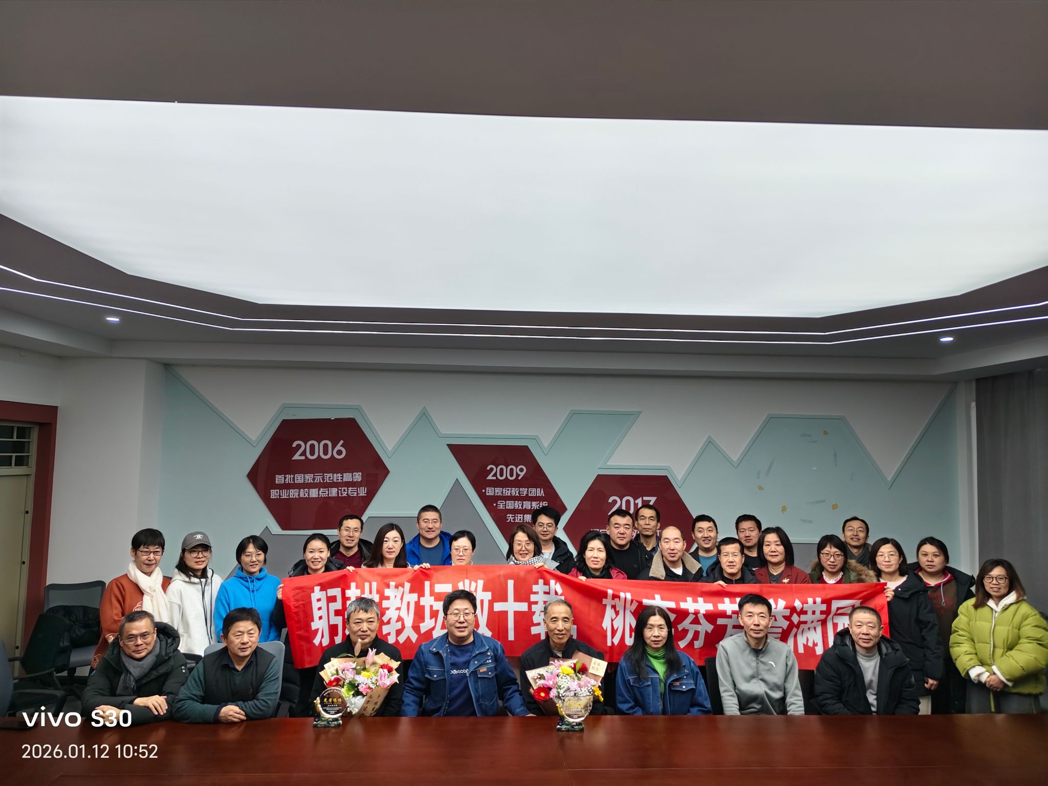 在全场热烈的掌声中,两位专业主任为他们颁发了荣退纪念品 蘑菇影视免费观看,送上满载敬意的鲜花,致敬两位老师作为高职教育工作者“以技育人,以德立身”的责任与担当,全体与会人员合影留念,定格温情瞬间。