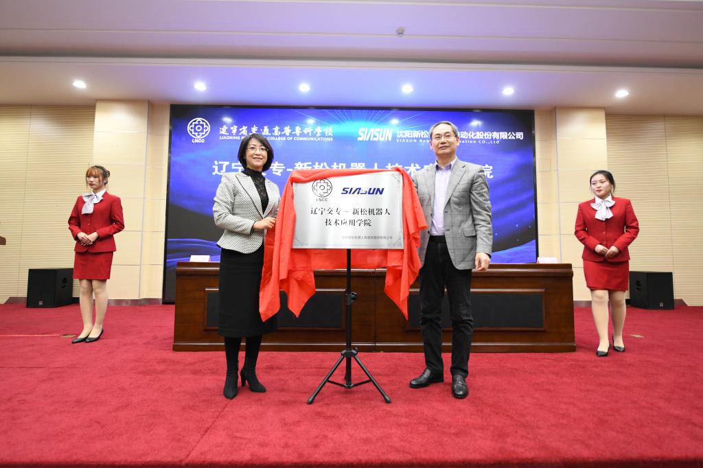 教育厅花蕾副厅长与新松机器人总裁曲道奎为产业学院揭牌
